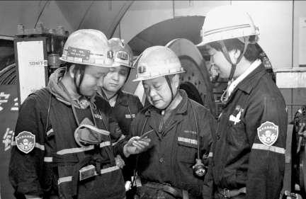 在义海精神的感召下,耿村煤矿积极开展“防风险、除隐患、遏事故”活动,进一步发挥青年安全监督岗员的排头兵作用,超前管控各类安全风险,消除各种安全隐患,确保矿井安全生产。图为6月11日,青年安全监督岗员在井下抽查职工应知应会知识掌握情况和持证上岗情况。曾留记 摄