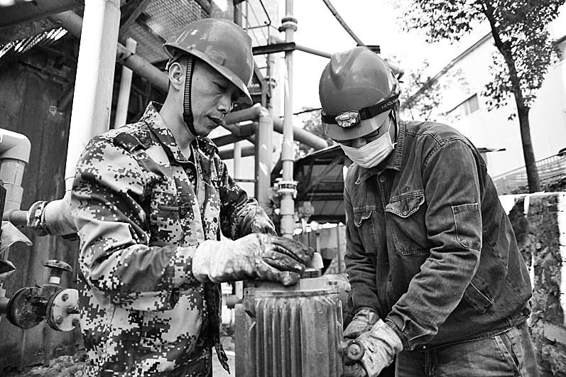 ▲热电分公司干部职工立足岗位,加大修旧利废、小改小革力度,全力干好本职工作,为公司长足发展贡献力量。图为5月19日,热电分公司跃进二电厂职工为电机进行拆检注油。宋艳 摄