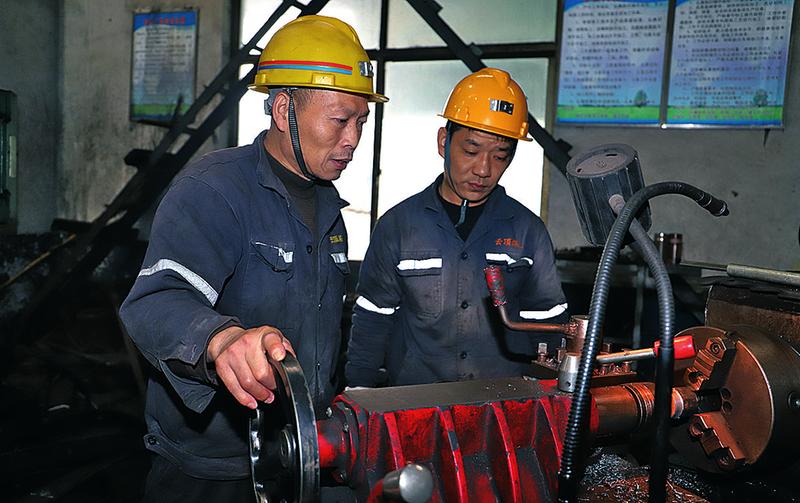 云顶煤业大力弘扬“千秋八一采煤队精神”,深入开展“与工人交朋友、拜工人为师傅”活动,充分发挥基层党组织的战斗堡垒作用和党员的先锋模范作用,为努力建设现代化新义煤贡献云顶力量。图为9月13日,机修车间师傅向新工人现场讲解传授车床技术。戚璇 摄