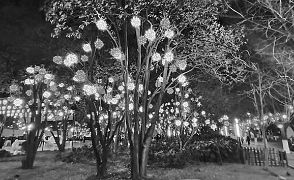 火树银花不夜天,万家灯火笑声传。2月4日晚,义马市体育公园和人民广场里游人如织,一组组新春花灯流光溢彩,璀璨夺目,呈现出一派浓厚的节日氛围。赵甜 摄
