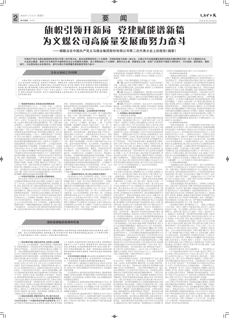 旗帜引领开新局 党建赋能谱新篇 为义煤公司高质量发展而努力奋斗