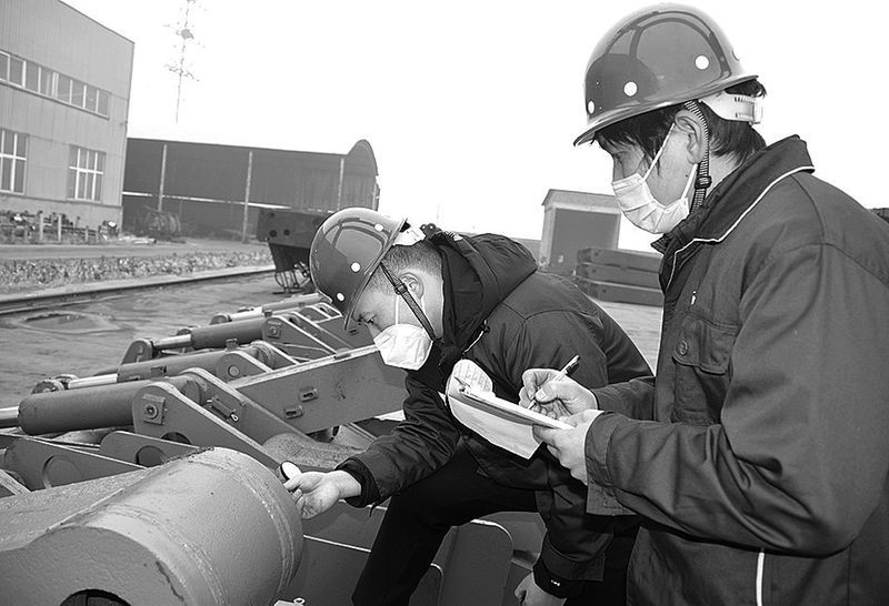 ◀进入冬季,物资供应租赁中心着重在强化设备防护、确保工作面设备顺利接替、优化设备维修流程等方面下功夫,为设备的安全、高效、稳定运行保驾护航。图为12月16日,设备管理人员在校验维修后的设备尺寸。 穆梅 摄