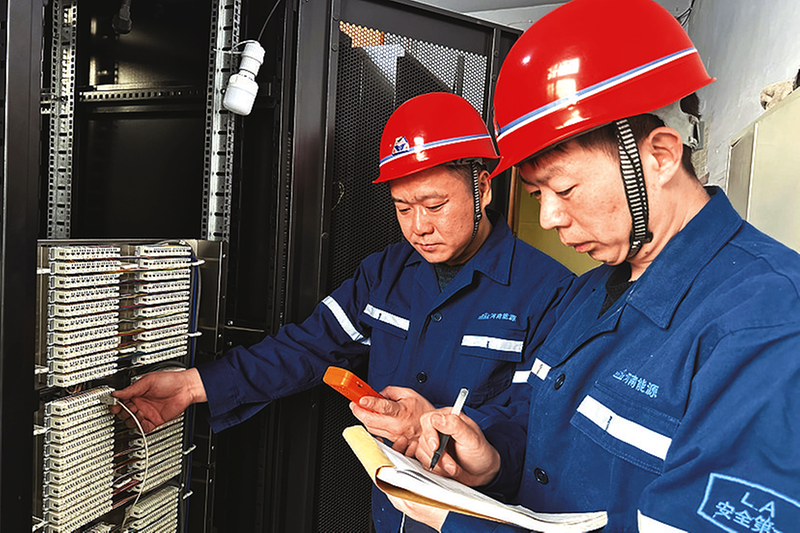 连日来,新安煤矿广大干部职工积极践行“把事情做到最好”,以“零差错、零缺陷、零失误”的标准立足岗位、争先创优,不断加强隐患排查,确保矿井安全、稳步运行,用勤劳的双手奋力谱写企业高质量发展的新篇章。图为5月26日,通风队职工对调度总机电话号码线路进行调试和排序。