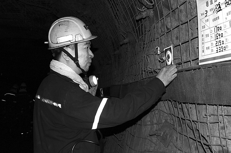 ②5月29日,管理人员在检查开拓一队创新研发的精准围岩表面位移观测站。