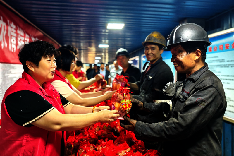 5月29日,新安煤矿开展“浓情端午、‘粽’享安全”慰问活动,安全协管员为升入井的一线职工送上香甜的粽子、鸡蛋、面包等慰问品,以及绣有“平安”“吉祥”“幸福”字样的香包,叮嘱广大职工要时刻牢记安全,干部职工脸上都洋溢着幸福的笑容。江嫚 摄