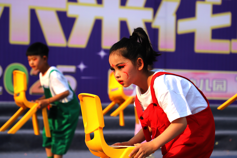 5月29日,“六一”国际儿童节临近,观音堂煤业观苑幼儿园举办迎“六一”文艺汇演,现场为小朋友送去慰问品,向小朋友们致以节日的祝贺。图为文艺汇演现场。 张龙彬 摄