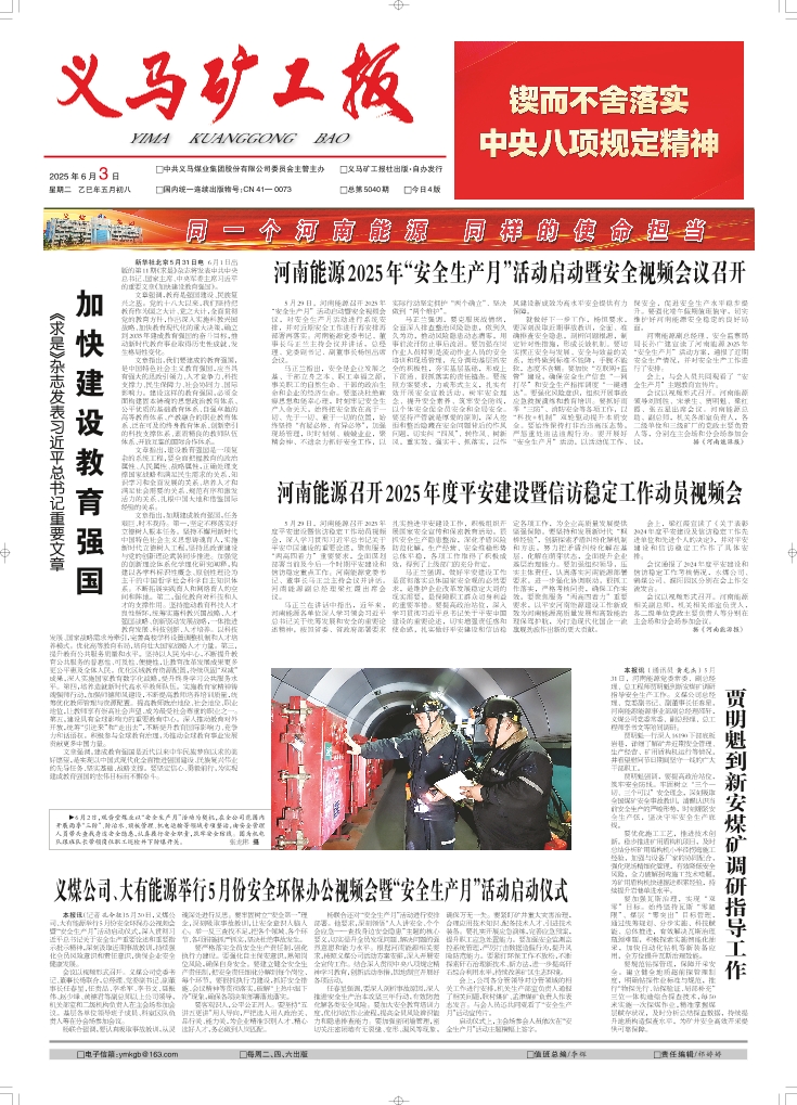 义煤公司、大有能源举行5月份安全环保办公视频会暨“安全生产月”活动启动仪式