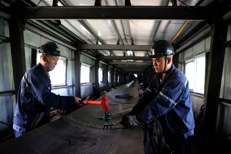 观音堂煤业紧紧围绕“人人讲安全、个个会应急——查找身边安全隐患”主题,通过开展隐患排查、应急演练、安全宣讲等系列活动,防范化解重大风险,及时消除安全隐患,夯实安全基础,为矿井安全高效发展提供坚实保障。图为6月4日,地面运输队职工在更换皮带扣。 张龙彬 摄