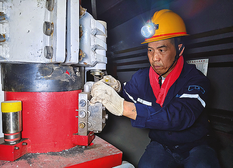 连 日来,耿村煤矿以持续深化全员自主 管 理为 抓手,进一步建立健全班组安全生产管理体系,全力把好安全生产第一道关口,为矿井安全生产打稳基础。图为6月8日,综采一队技术人员在排查液压支架安全隐患。