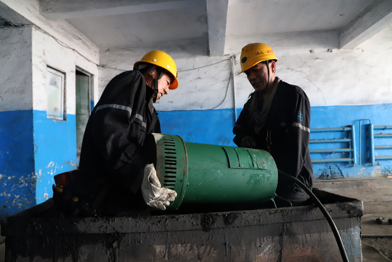 常村煤矿聚焦重点、紧盯关键,深入开展“查找身边安全隐患”活动,力求将风险预判在前、预案制定在前,做到未雨绸缪、有备无患。图为6月6日,该矿职工将备用潜水泵装车,准备运往井下,以实际行动筑牢汛期安全防线,全力保障矿井安全生产。