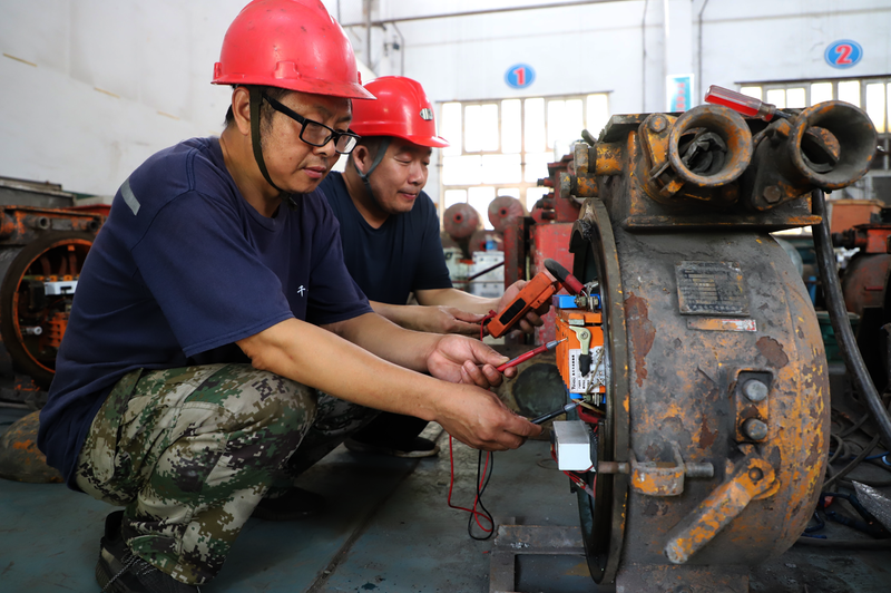 千秋煤矿围绕“安全生产月”活动主题,积极开展隐患排查整治行动,组织全员开展地毯式安全隐患排查,以“零隐患”目标拧紧安全生产责任链条。图为6月11,机修车间职工在对机电设备进行检修。