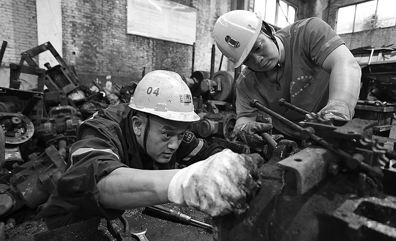 耿村煤矿将修旧利废作为一项常态化、精细化的重点工作扎实推进,进一步提升了资源利用效率。图为9月9日,机修车间专业技术人员正在维修钻机。 曾留记 摄