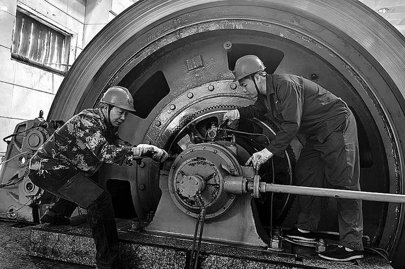 新安煤矿严格落实设备管理制度,采用日常巡检、专项维护、周期性全面检修“三位一体”的运维模式,有效降低设备故障率,从源头杜绝设备“带病”运行隐患,筑牢安全生产防线。图为10月14日,机电一队技术人员在检查绞车液压油路。 张安静 摄