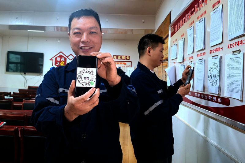 “手机扫一扫,就能反映问题,太方便了。”近日,新安煤矿设立“矿区e家”线上意见箱,职工通过手机或电脑,可随时提交工作、生活等方面的意见建议,进一步畅通了职工诉求渠道。图为职工展示“矿区e家”线上意见箱二维码。
