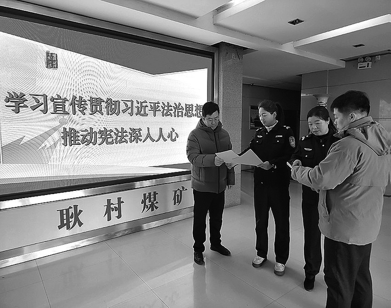 12月4日是第12个国家宪法日,耿村煤矿紧扣“学习宣传贯彻习近平法治思想,推动宪法深入人心”主题,通过悬挂横幅、摆放普法展板、发放宣传手册等形式,向职工及家属普及宪法核心要义。通过系列活动,有效提升了全矿干部职工的宪法意识和法治素养,让宪法精神走进矿区一线、浸润职工心田,为矿井高质量发展筑牢法治根基。图为12月3日,工作人员为职工发放宣传手册。杨雪艳 摄