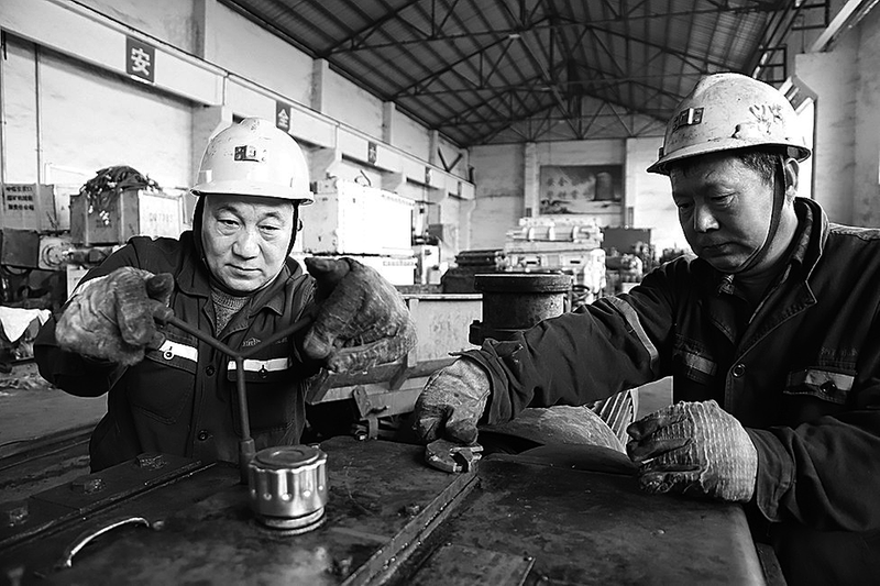 常村煤矿对基层单位的设备维修、加工配件等项目采取每天一验收、每月一结算的市场化工资结算模式,充分调动基层职工多劳多得、技术攻关的积极性。图为12月25日,机修车间职工在认真维修设备。 李红波摄